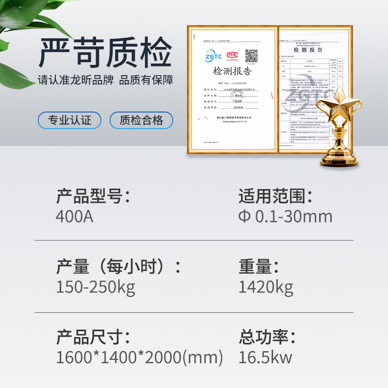 400A型100-250公斤/小时 价格:55000 编号:400A中小产量 产地:浙江台州